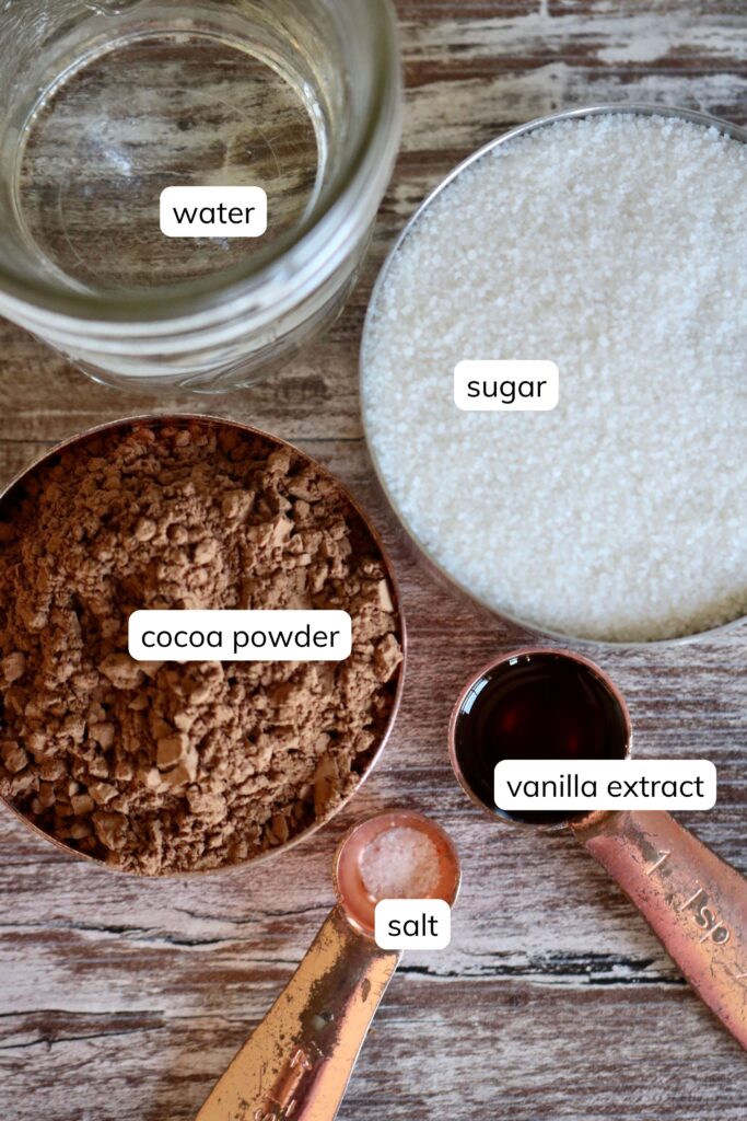 All this recipe uses is organic cane sugar, rich, dark cocoa powder, some water, a little salt, and pure vanilla extract. You can’t get much more simple than that!